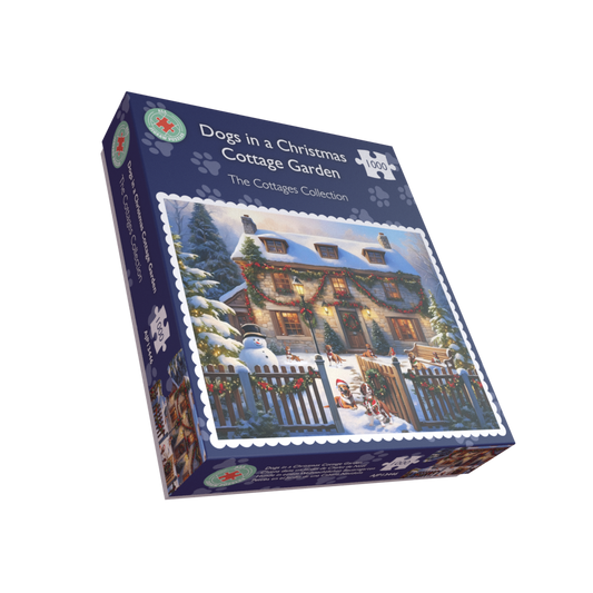 Dogs in a Christmas Cottage Garden 1000 or 500 Piece Jigsaw Puzzle