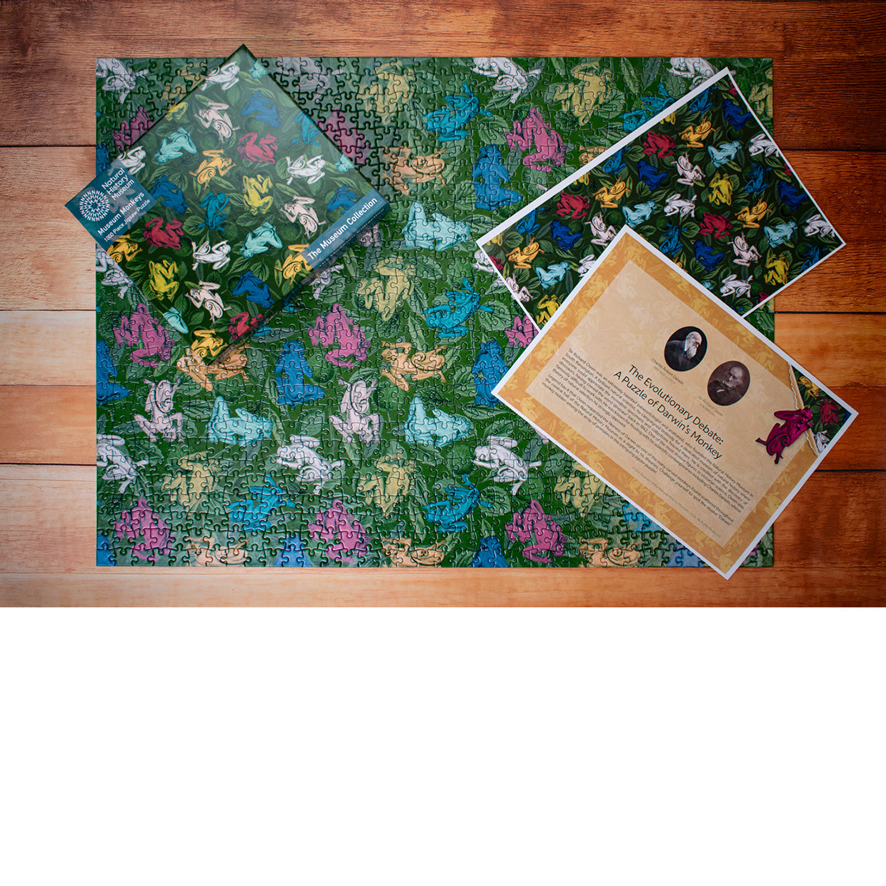 Sir Richard Owen who famously founded the Natural History museum, strongly opposed Charles Darwin and his theory of Natural selection. Legend has it, he made likeness of Darwin in the ape carved architecture within the stone walls, inside the great hall of the Natural History Museum. He quite literally made a monkey out of him! This fascinating fact has inspired this beautifully designed jigsaw puzzle and injected new life in to these historical legends.