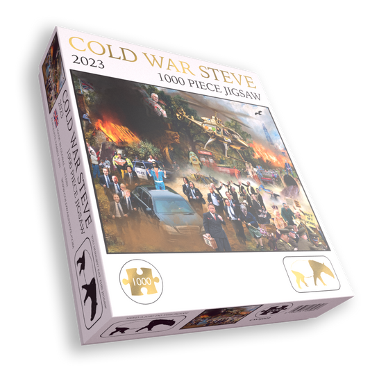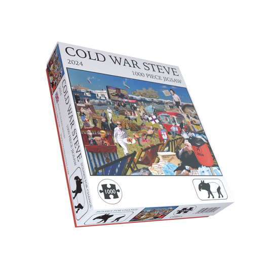 Cold War Steve creates surreal and satirical artwork surrounding current affairs in Britain and beyond. Discover this incredible range of comical jigsaw puzzles, that Cold War Steve himself describes as the Ultimate Adequate Family fun. There are now 9 jigsaw puzzles to collect!