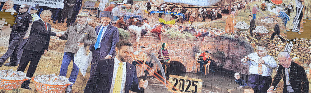This is the new official home for all Cold War Steve’s jigsaws. Including the classic and Design Award nominated ‘Hellscape’, lockdown mega hit ‘Harold', the epic ‘Trumpscape’ and now the two new releases for 2024 a special Election release 'In the Sh*t' and phenomenal fan-based puzzle 'Partisans'.