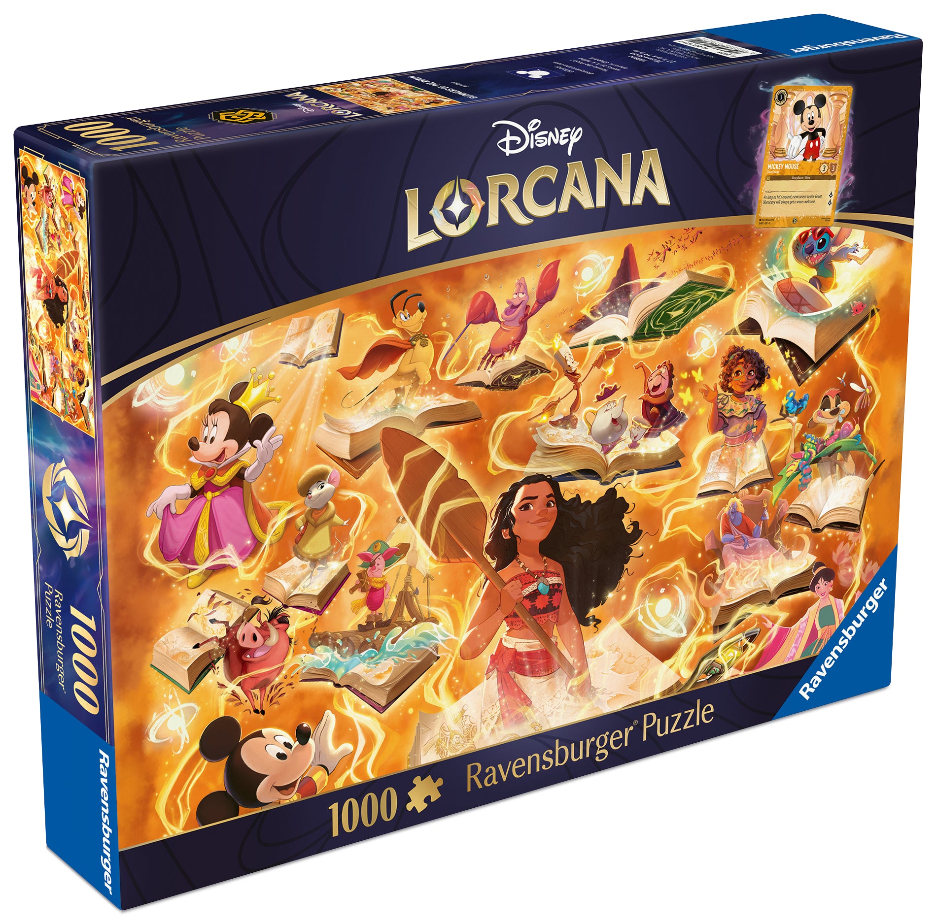 Step into the enchanting world of Disney Lorcana with this captivating 1000 piece Ravensburger puzzle, featuring stunning artwork from the Glimmers of the Realm Steel set.