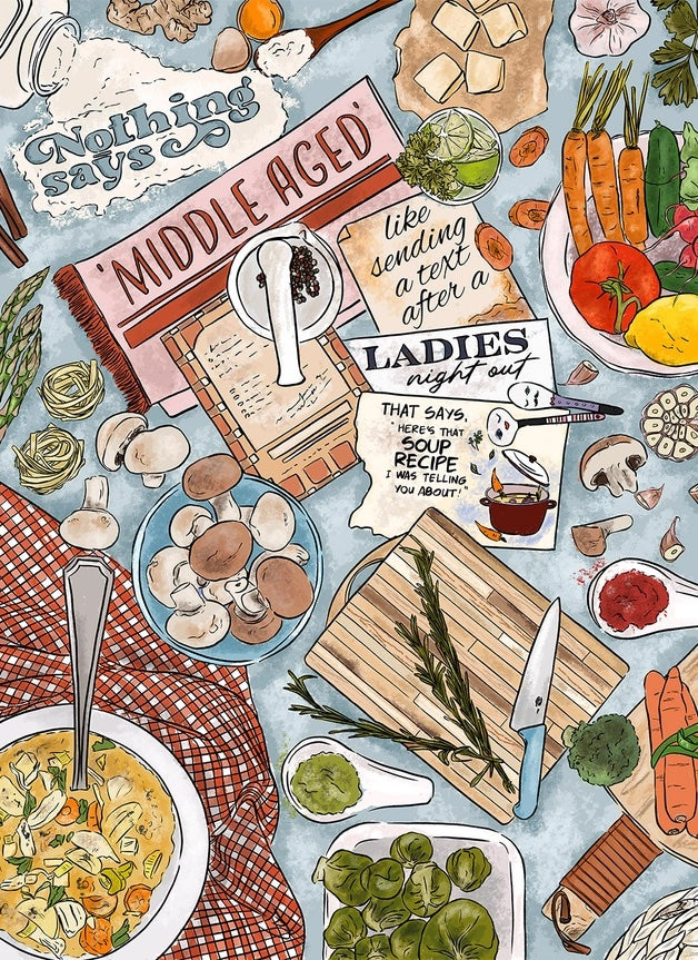 “Nothing says middle-aged like sending a text after a ladies’ night out that says: here’s the soup recipe I was telling you about.”