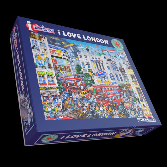 If you're a fan of the madness and mischief that is Mike Jupp Brand you will love his new puzzle ranges at All Jigsaw Puzzles. We now stock his Infamous 'I Love' Range including his latest updated design called I Love GB Too, which has been carefully updated via CGI and pencil 20 years later!