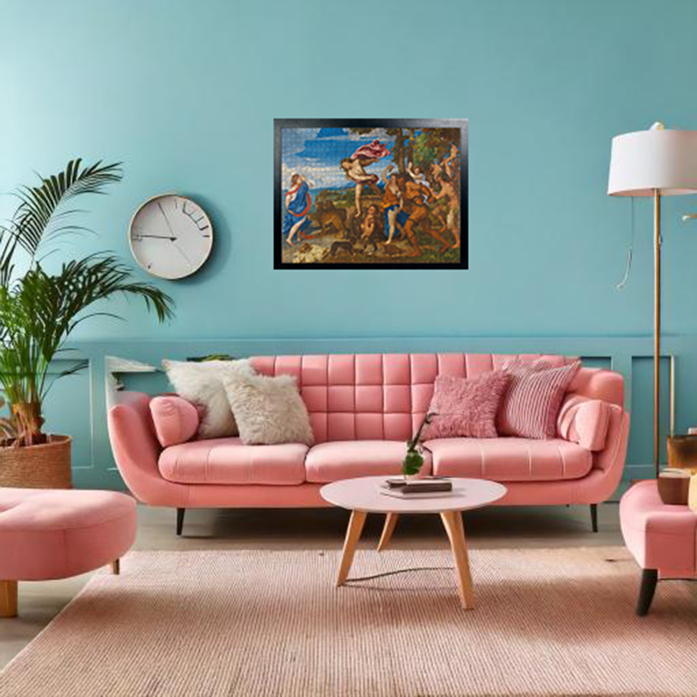 Painted by Titian and dating back to 1520, Bacchus and Ariadne‚ is a story from Greek Mythology, set on the Greek island of Naxos. In this scene, Ariadne has been abandoned by Theseus on this island. Bacchus, who is the god of wine, is leaping from a chariot drawn by cheetahs towards Adriadne after falling in love with her at first sight. In the sky, you can see Ariadne's constellation of stars, which was created for her by Bacchus. Discover the story as a beautiful 1000 piece jigsaw puzzle.