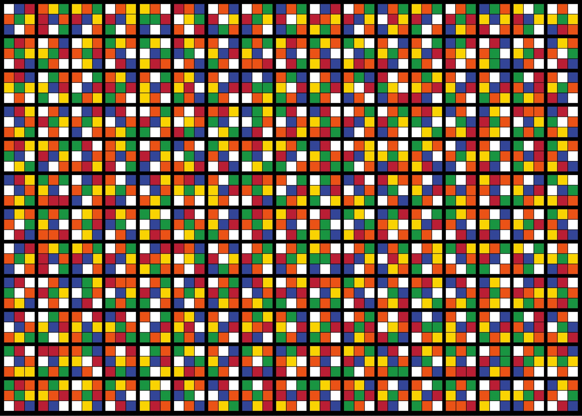 Featuring the signature white, red, blue, orange, green and yellow cube colours, this eye-catching design transforms the familiar cube into a stunning patterned illustration.
