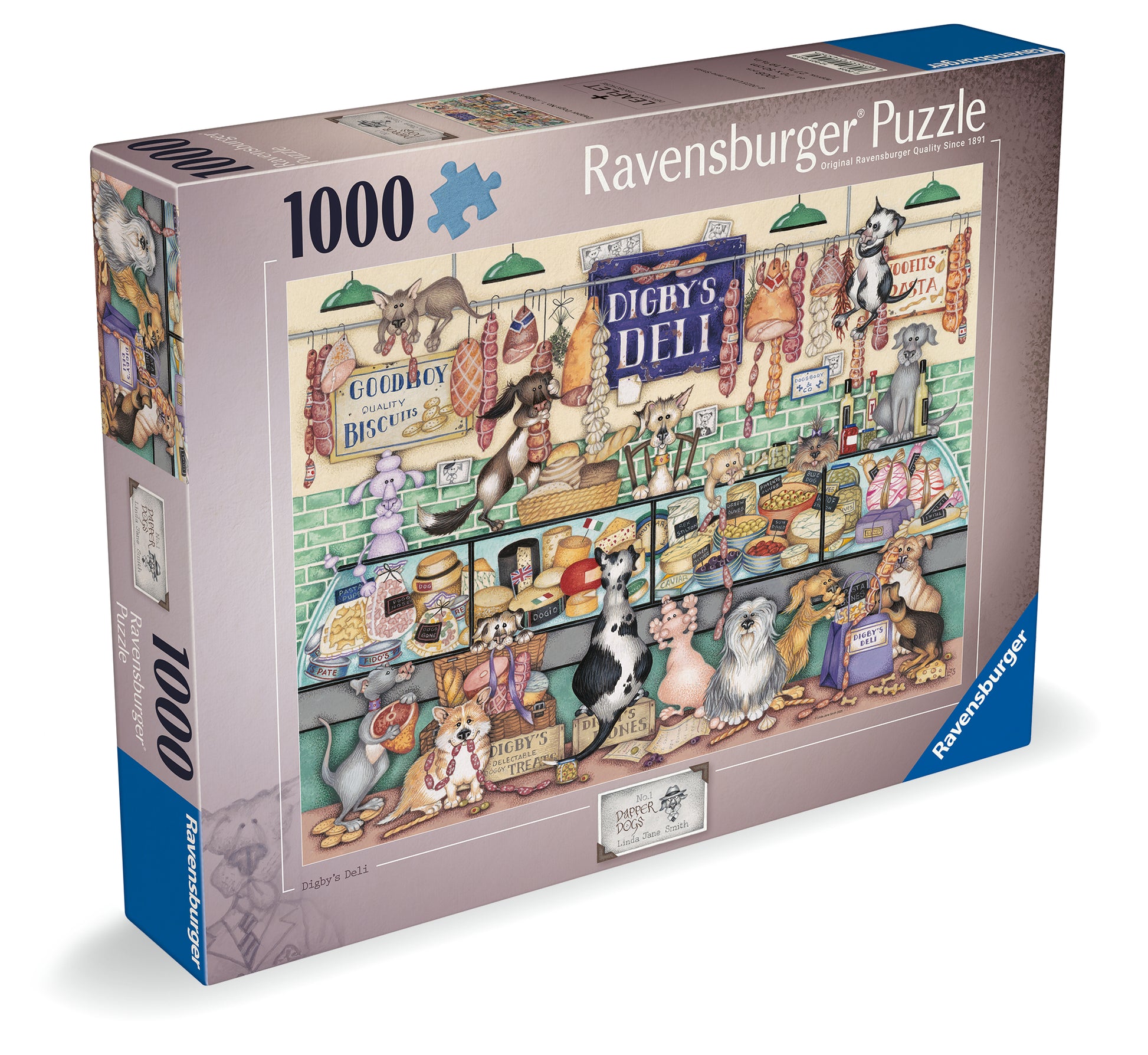 Get ready for a paws-itively delightful challenge with Dapper Dogs No.1. Digby’s Deli puzzle. Piece together all of the different breeds of mischievous dogs as they take over Digby's Deli and eat all of the delicious food!