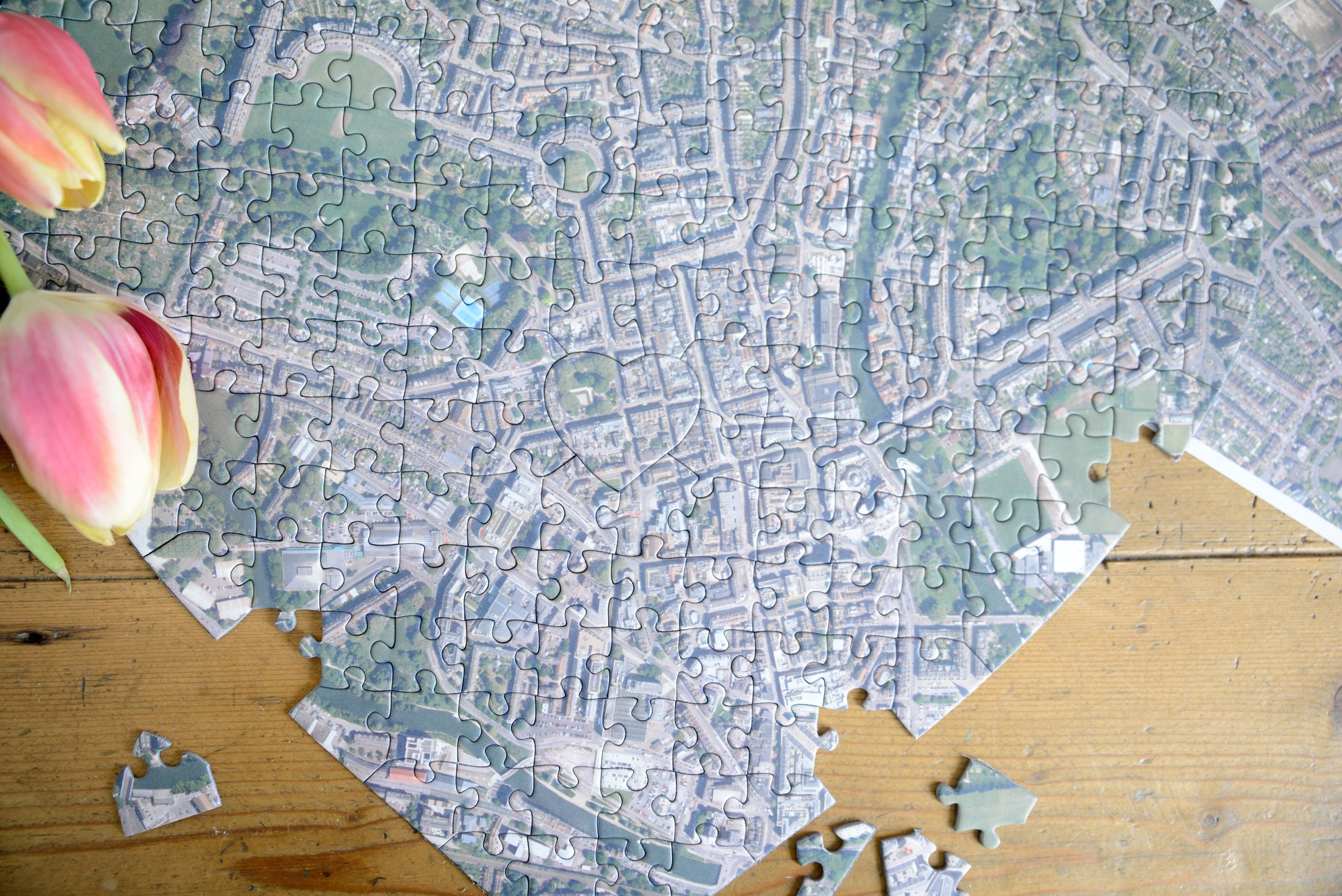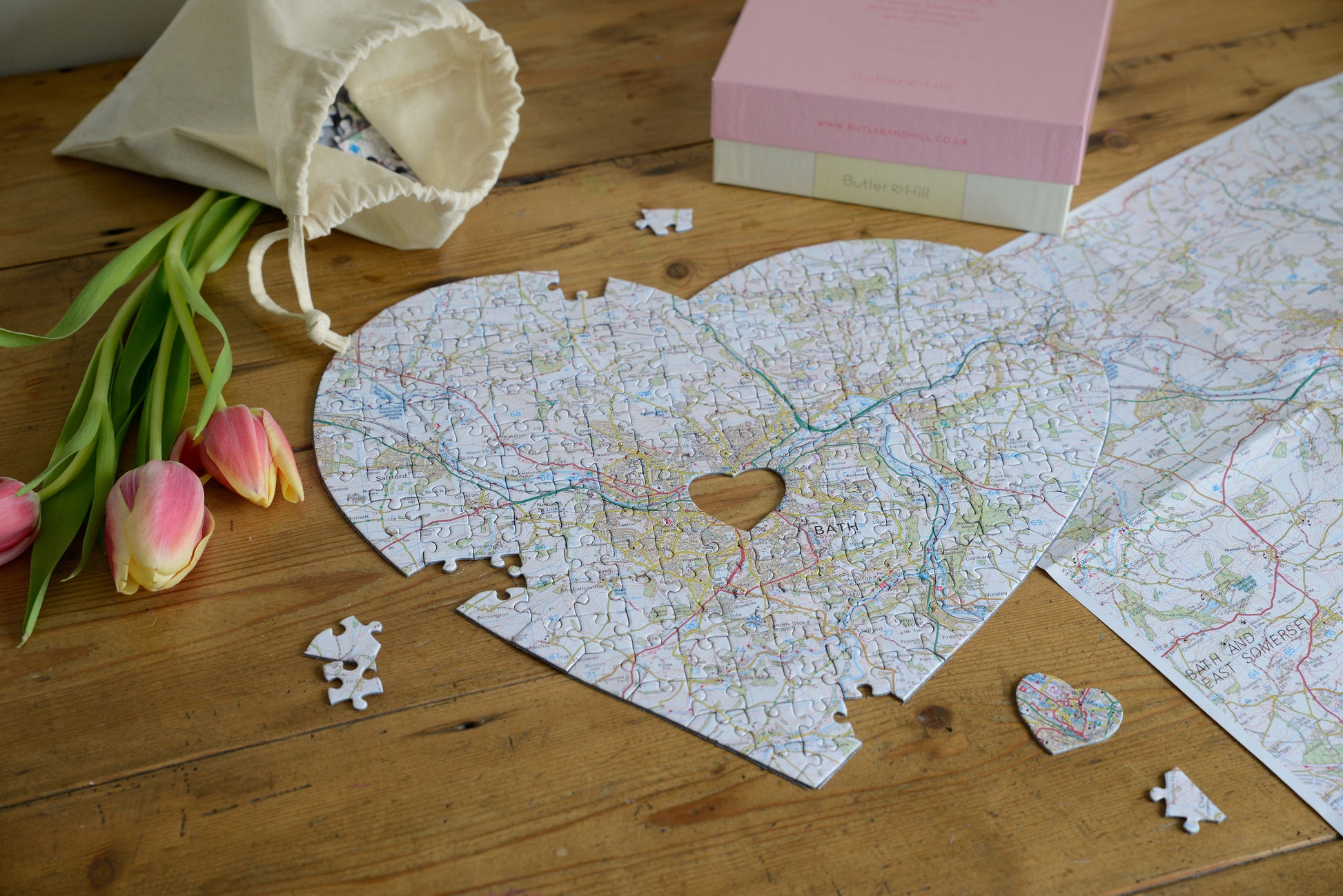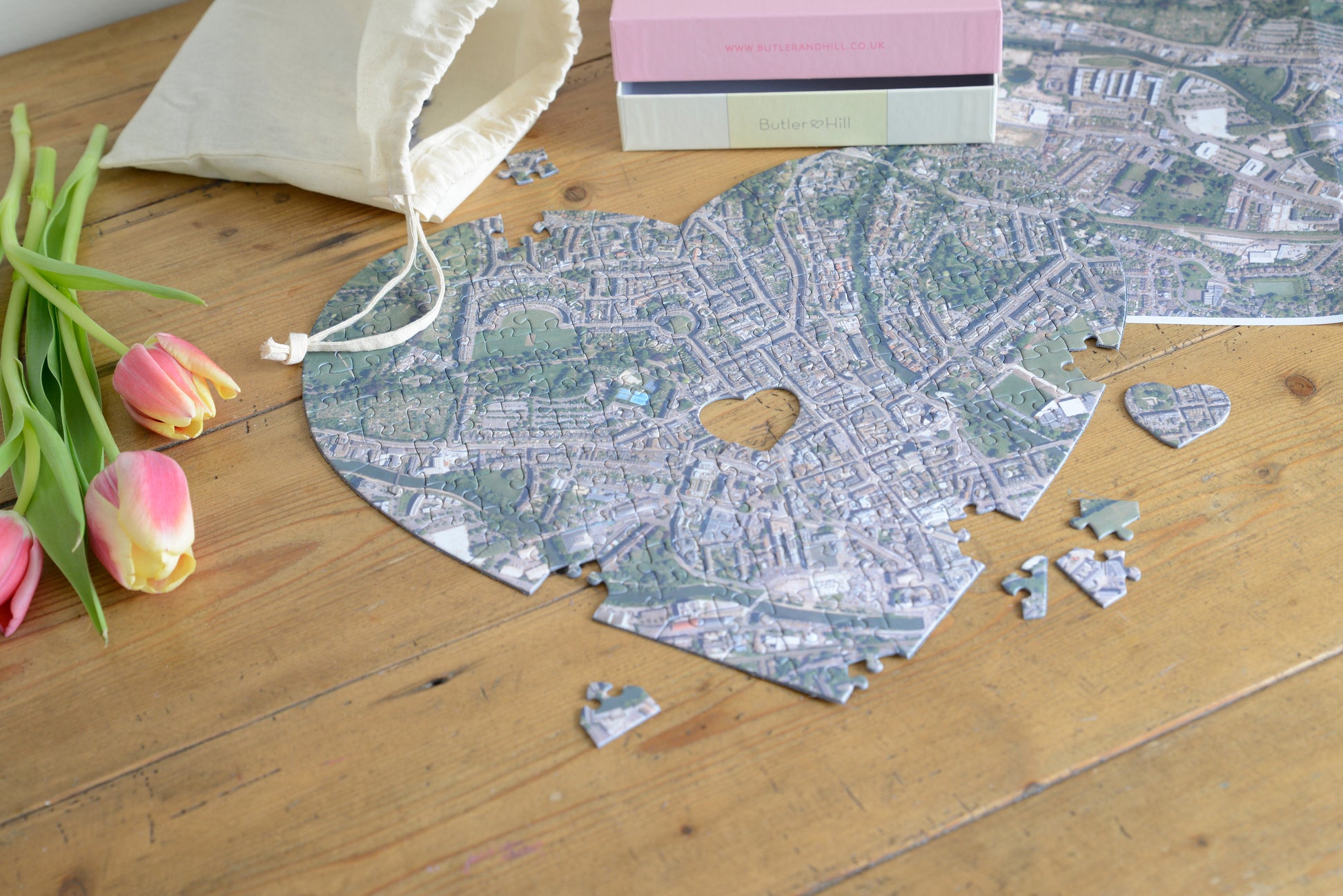Looking for an original romantic gift for a loved one? Show your appreciation with a heart-shaped jigsaw puzzle featuring a map or aerial image with your special place in the centre. The perfect present for birthdays, anniversaries, and of course Valentine's Day.