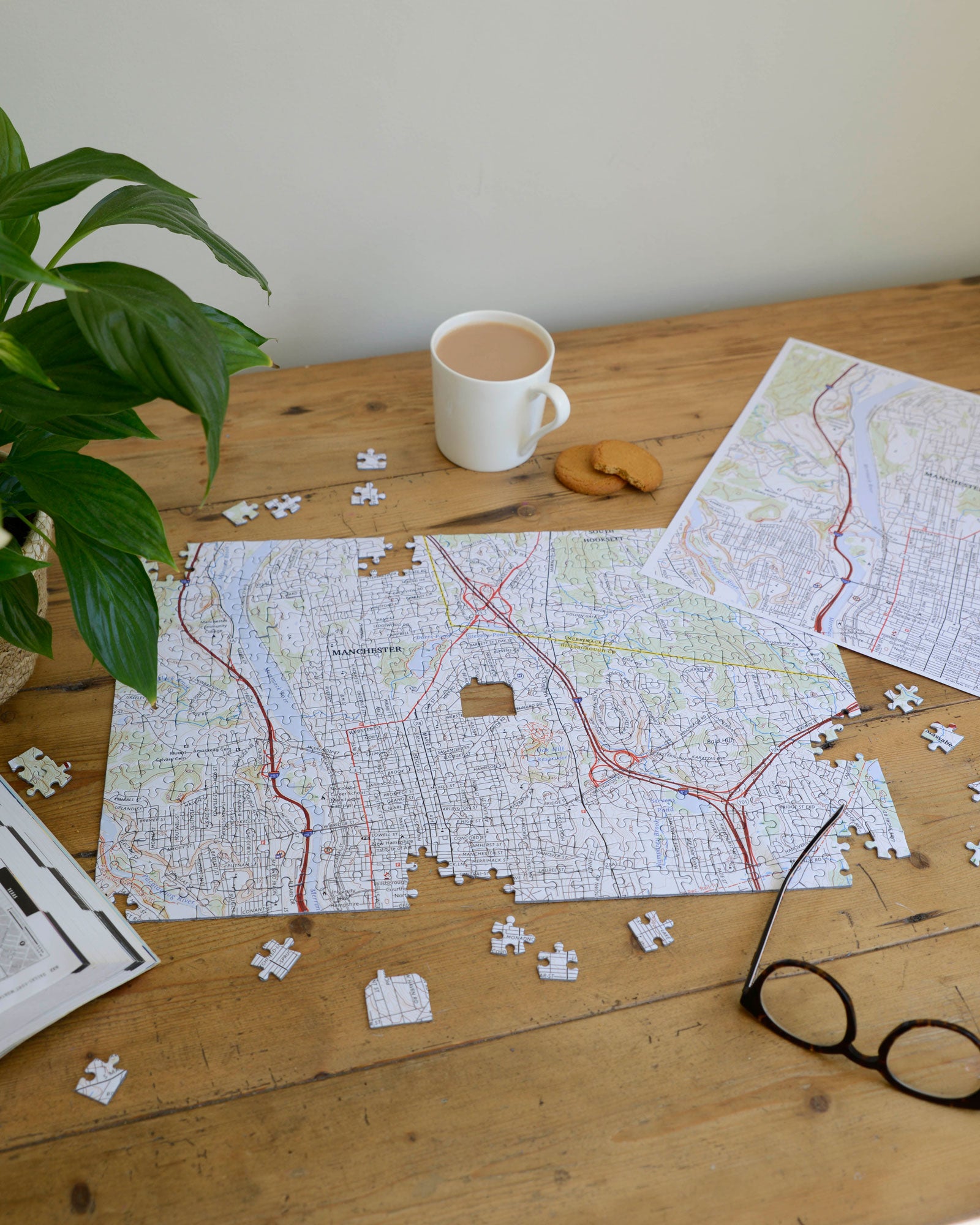 Your custom map jigsaw puzzle will feature 1.9mm thick pieces, carefully packaged in a beautiful box made from recycled materials. A guide print is included to assist you in piecing together your detailed map jigsaw.