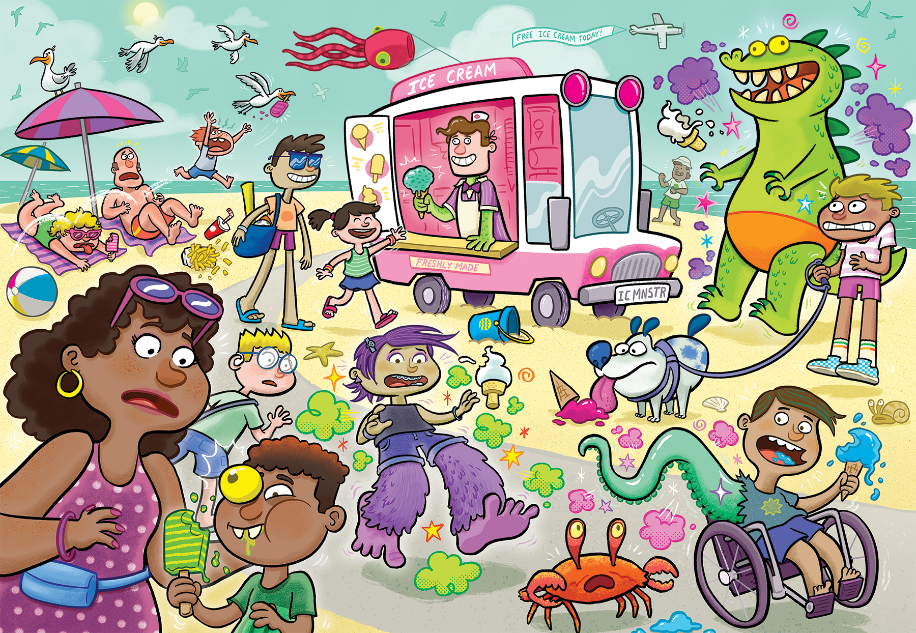 It’s a hot, sunny day at the beach and the air is full of excitement - especially near the ice cream van! Free ice creams on a scorching day? Yes please! But wait… something feels a little off. Is the sun making everyone silly, or are some truly strange things starting to happen?